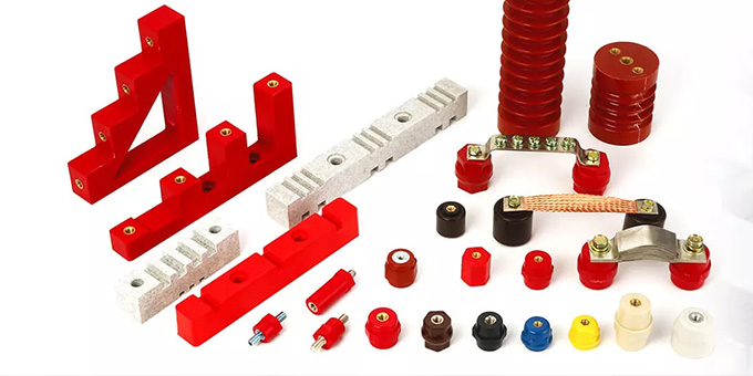 成形材料主要為BMC(Bough Moulding Compound)/ DMC(Dough Moulding Compound)不飽和樹脂。客戶可以根據(jù)自身對絕緣柱的絕緣,機械及電性能指標(biāo)要求制定使用普通或加強型材料,UL材料。